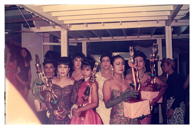 The Queer Indonesia Archive includes personal archives and those of institutions. This image is from Monica's personal archive, donated to the QIA. It depicts Monica with her friends in the salon c1990s/ QIA