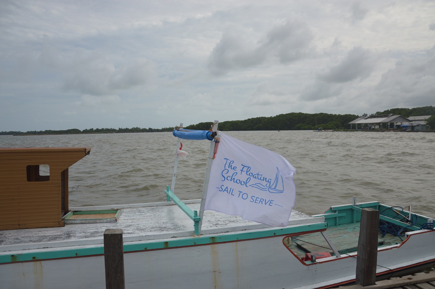 A small flag for the Floating School flies on the boat. (Rahmat Hidayat)
